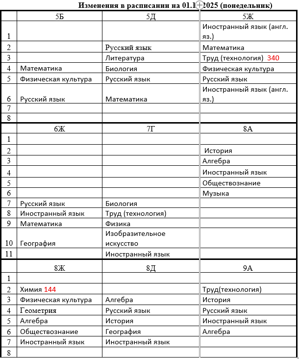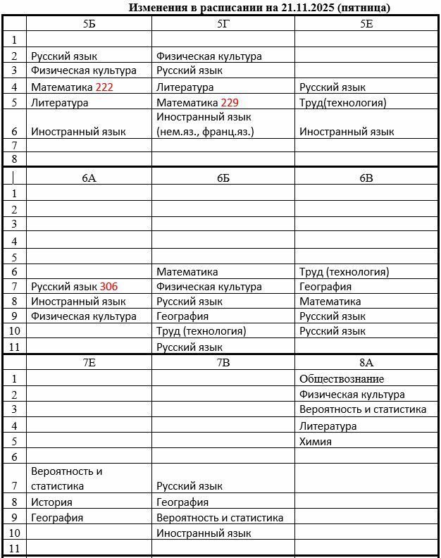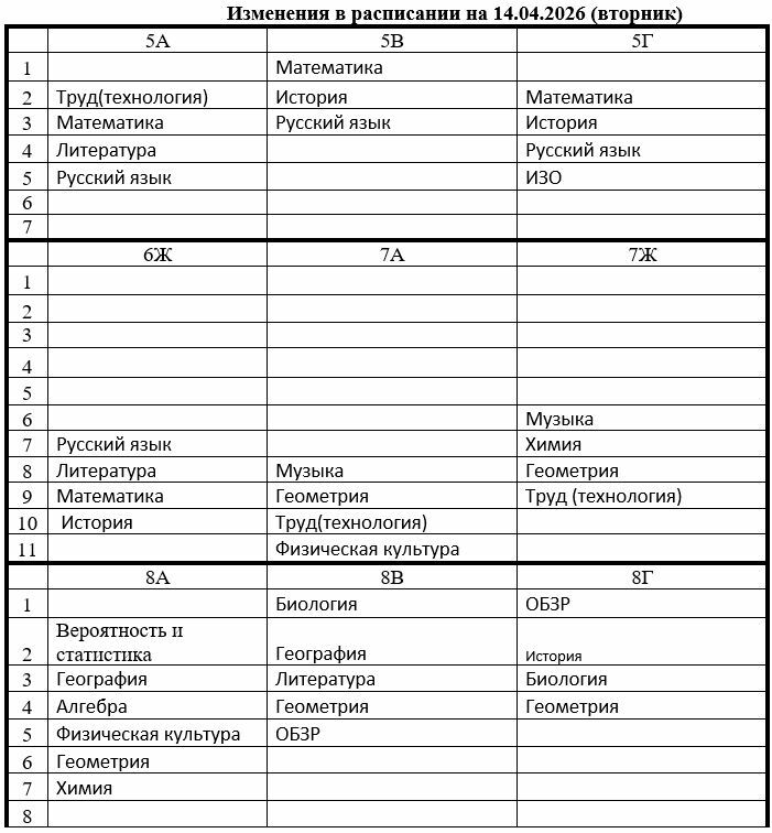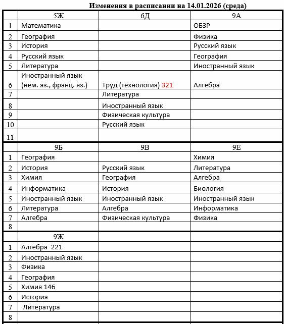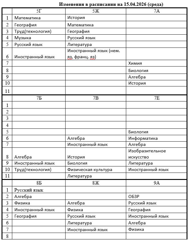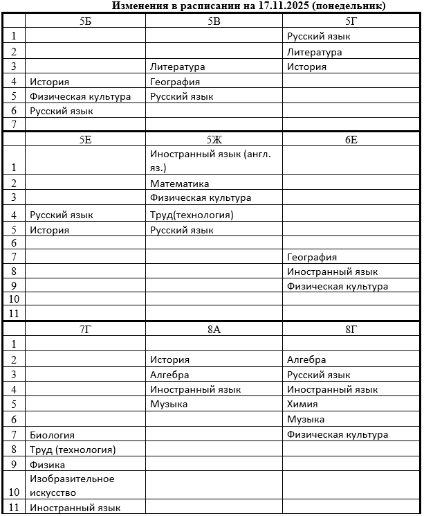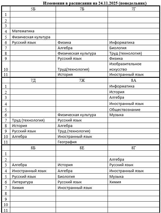 ИЗМЕНЕНИЯ В РАСПИСАНИИ